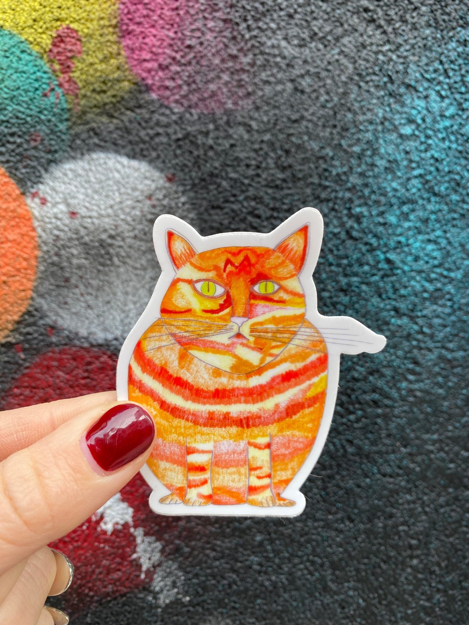From natchie’s Cat Cat collection. designed and printed in NYC! Malcolm –Â Always Hungry. Leisurely. Solid. Approximately 3 tall die cut sticker.
